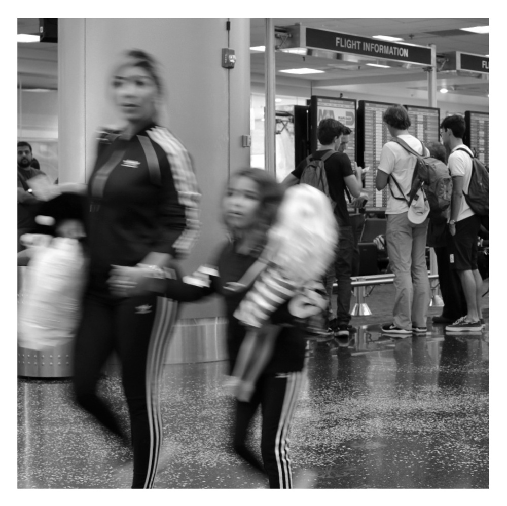 Tout aussi naturellement, mon œil va se poser sur le texte parce qu'il est net : oui, bon...nous sommes dans un aéroport!