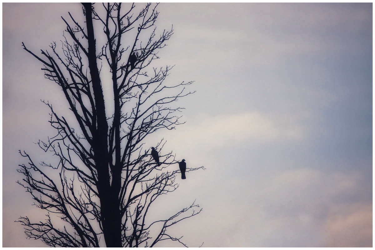 Image au traitement et aux tons très doux, elle approche le point de vue d'un oiseau perché sur son arbre.