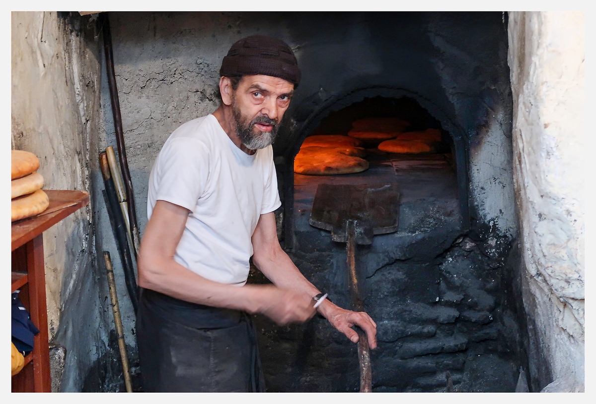 Le four tellement noirci a vu certainement passé beaucoup d'artisans comme ce monsieur, et à l'air harassé.