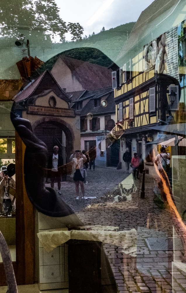 En fait isi vous regardez bient il s'agit d'un reflet au travers d'un chapeau daans une vitrine