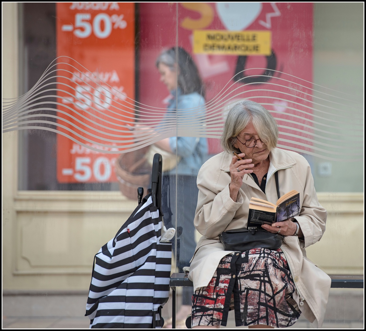 Bien loin des soldes à - 50%! Plaisir certain de la lecture, j'imagine bien cette dame rater un ou deux bus