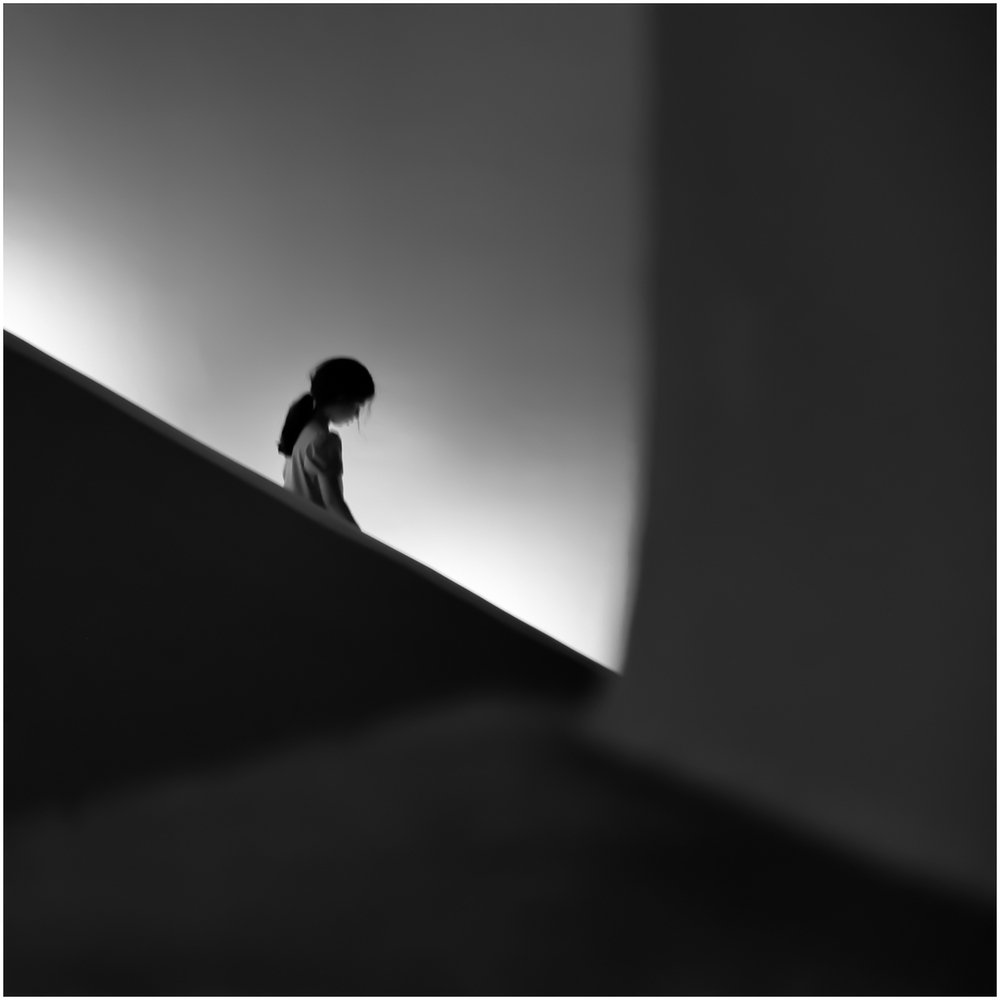 J'aime bien les cheveux qui s'agitent librement dans cet univer si géométrique.