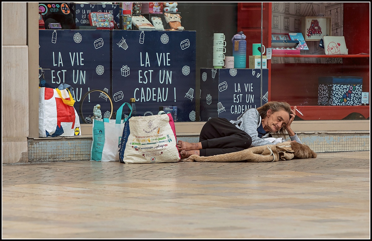 Photo coup de poings, difficile à commenter, bien évidement le contraste entre le message et la situation est saisissant, y'a t'il eu une interaction entre toi et cette dame? ( simple curiosité de ma part)
