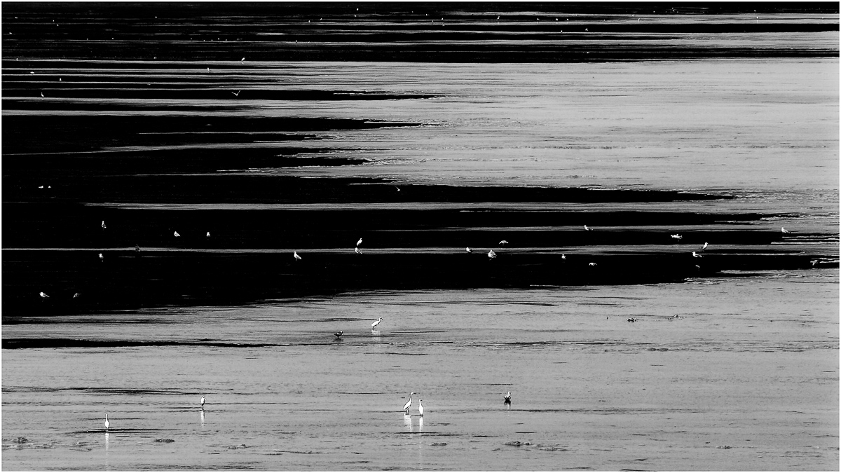 J'aime beaucoup ces noirs profonds qui s'incrustent dans ces eaux ridées de lumière, les oiseaux delicatement posés dessus.
