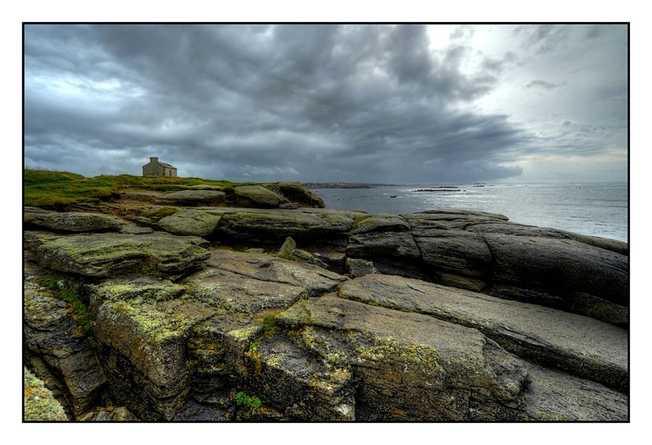 J’aime bien le côté minéral du premier plan et ce ciel.tourmenté et cette maison
