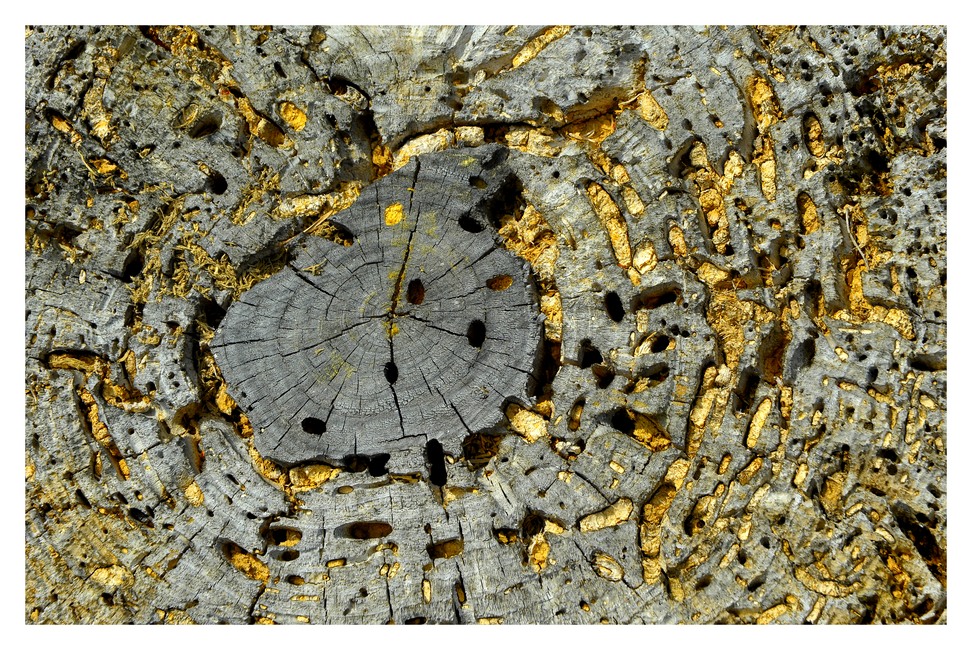 On dirait les vestiges d'une ville avec ses remparts ,ses maisons .. ses rues .. ses galeries souterraines .. et en même temps y a quelque chose de précieux dans l'image c'est lié à ce jaune qui ressemble à de l'or et qui lui donne un plus pour nous raconter une autre histoire