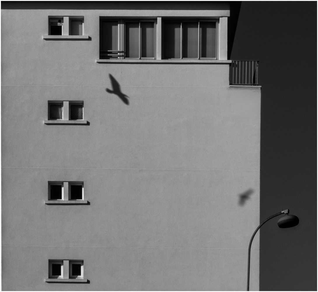 J'aime bien l'ombre de la liberté planant sur cette façade grise et austère.