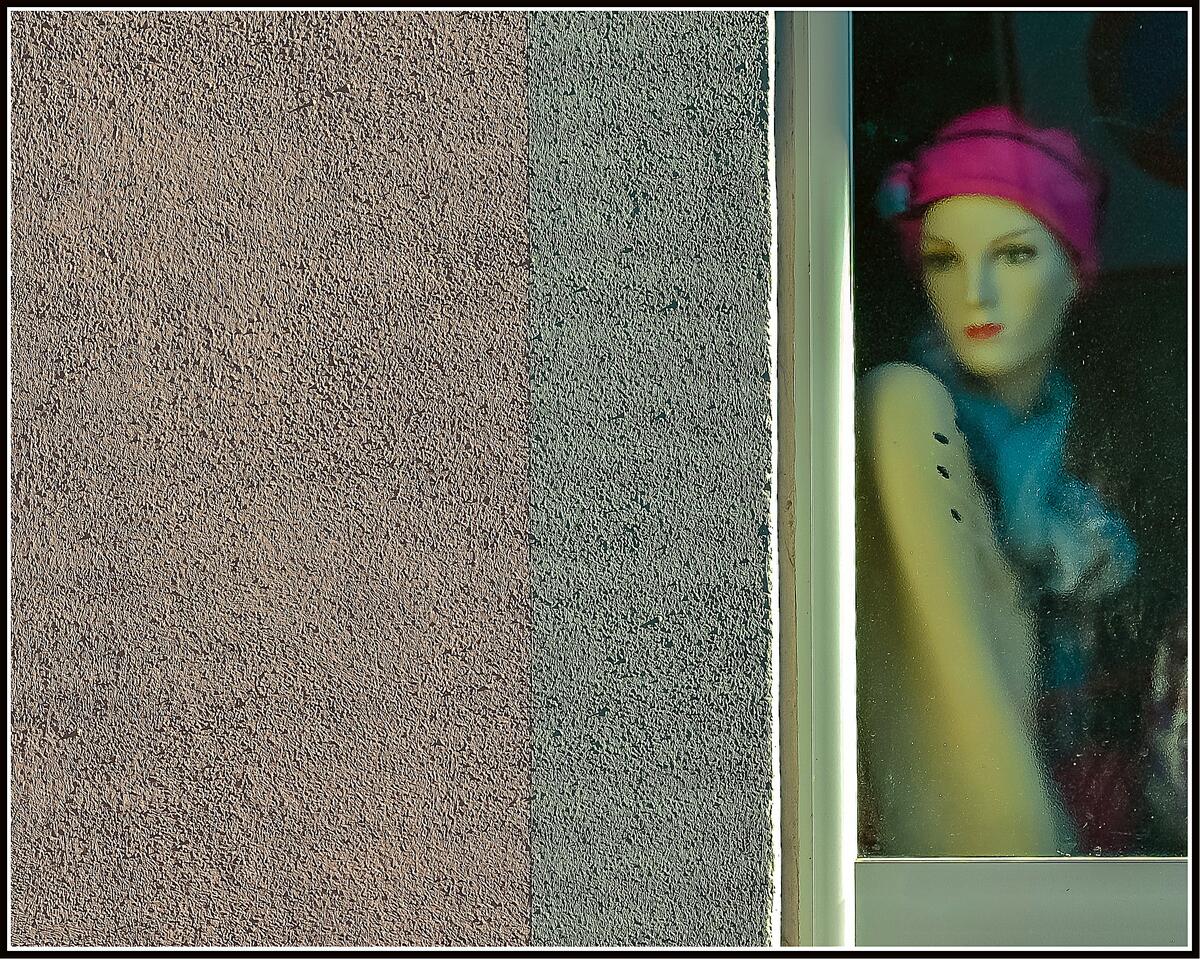 L'uniformité du mur semble rendre sa sobriété au mannequin que l'on a habillé de manière extravagante et que l'on a placé, a cet endroit, de manière non moins extravagante.