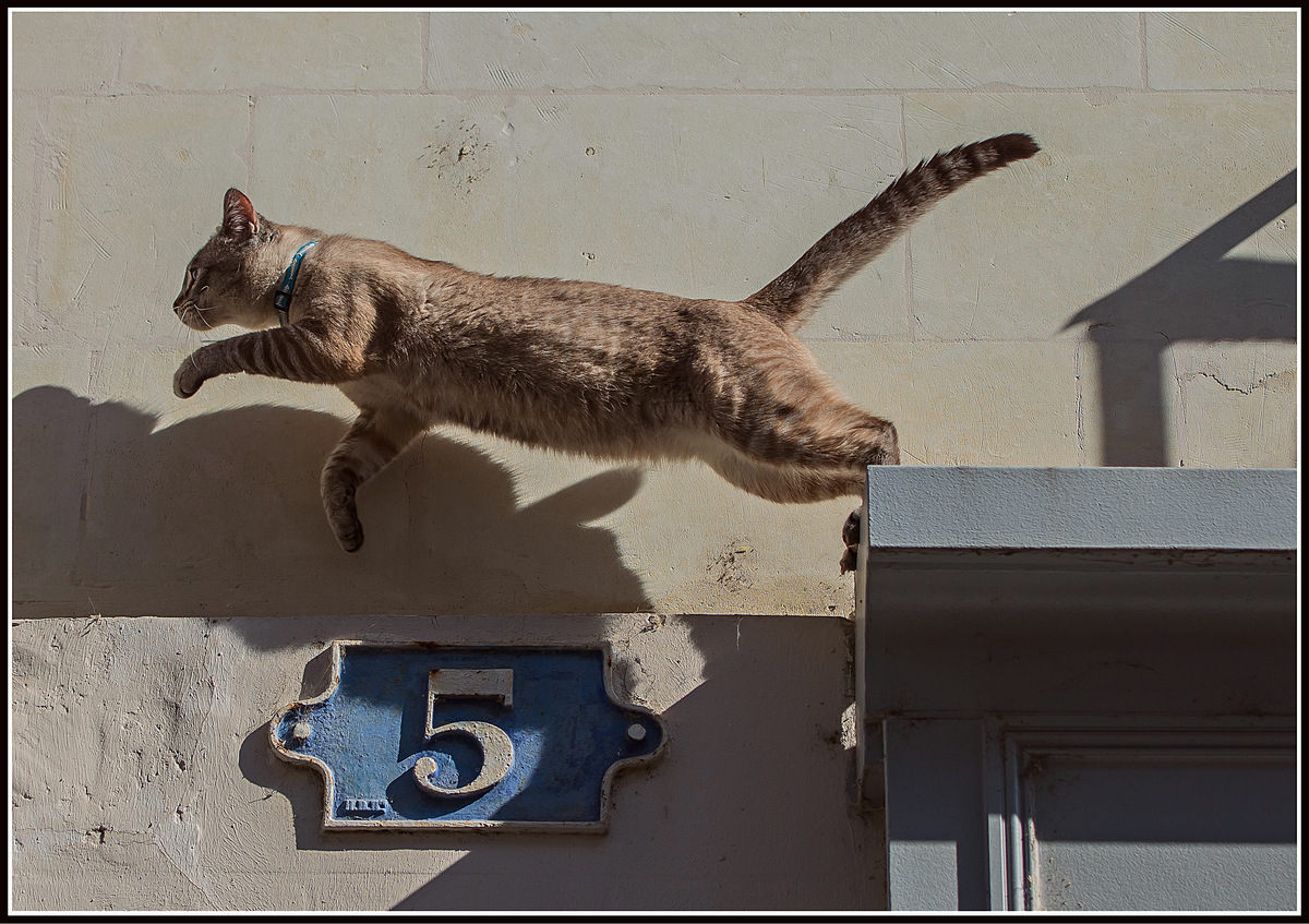 Hello, ne pas avoir l'ombre en entier ne me dérange pas, ce que je vois c'est le triangle formé par les bleus du collier, du numéro et du haut de porte? Et je ne sais pas pourquoi, j'affectionne l'ombre à droite!Et les textures. Concentré le gars! belle dynamique...