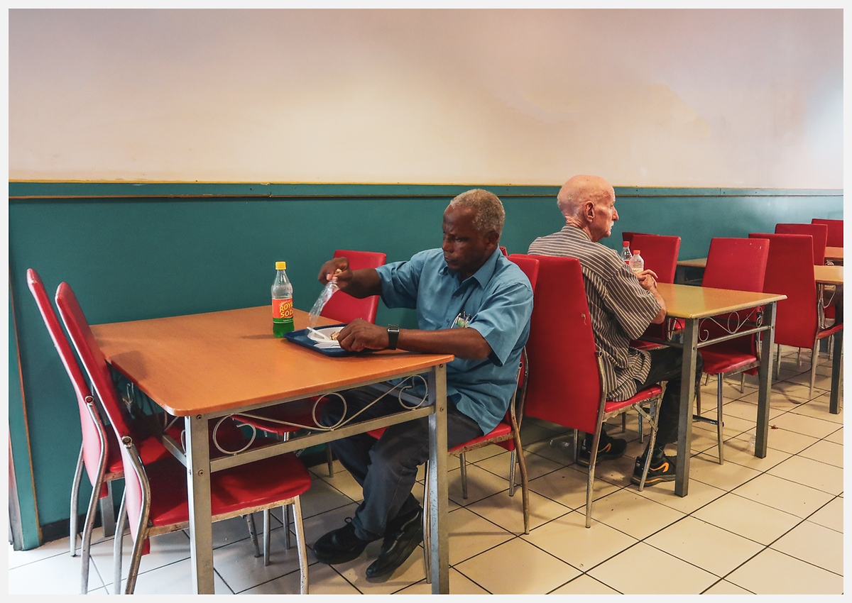 Ca, ce n'est pas en France, ce type de café n'est pas, sauf erreur ou exception, dans l'idée du confort désordonné franchouillard .. C'est dommage que la netteté ne soit pas parfaite sur le premier personnage, ça aurait été encore davantage hyper réaliste .. C'est toutefois, a mon sens, une image fort intéressante, la palette de couleurs flashy y contribue .. Un peu plus de bas et moins de haut ..