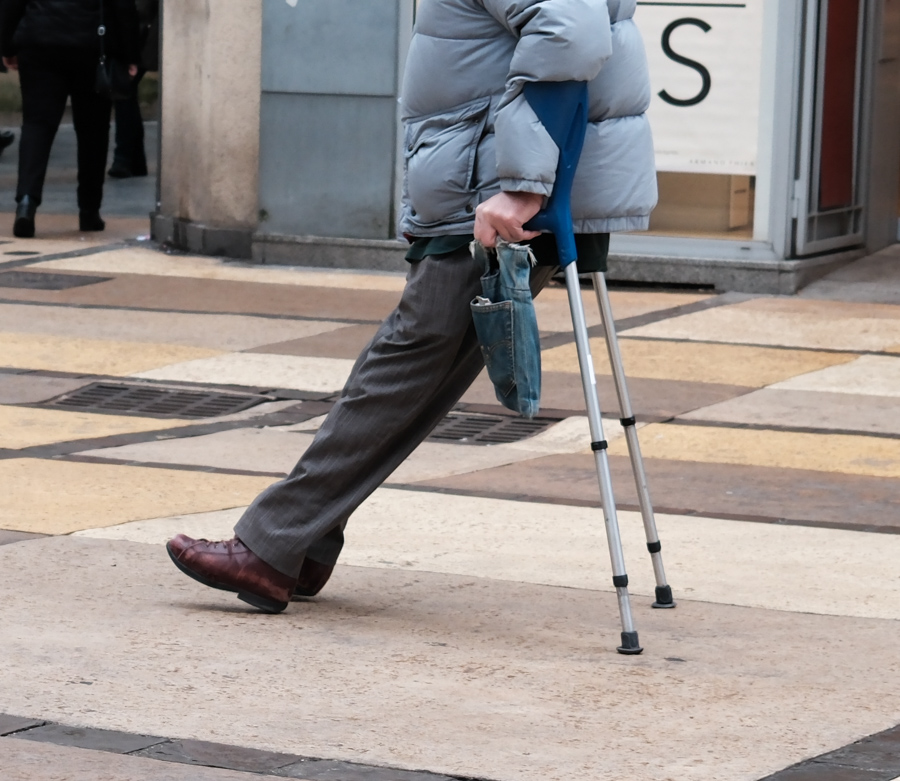 Et bien à la lecture, je n'avais absolument pas lu cette image comme ça. Pour moi, cette personne se reposait sur les poignées de ses béquilles.