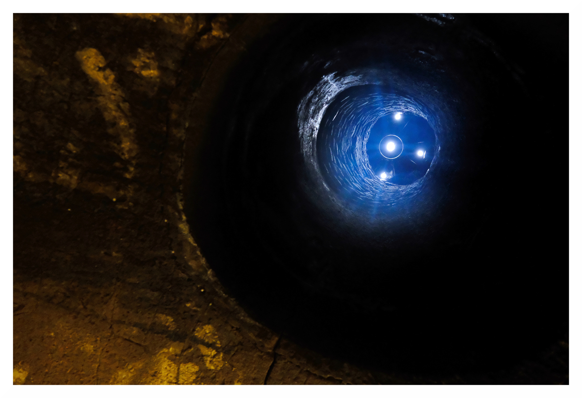 j'ai été visiter le musée des égouts (ouais ça existe à BXL) qui comprend un bout de parcours souterrain dans des canalisations et le long de la Senne (la rivière voûtée au XIXe). La photo est une vue au travers d'une plaque d'égouts, mais d'en dessous.