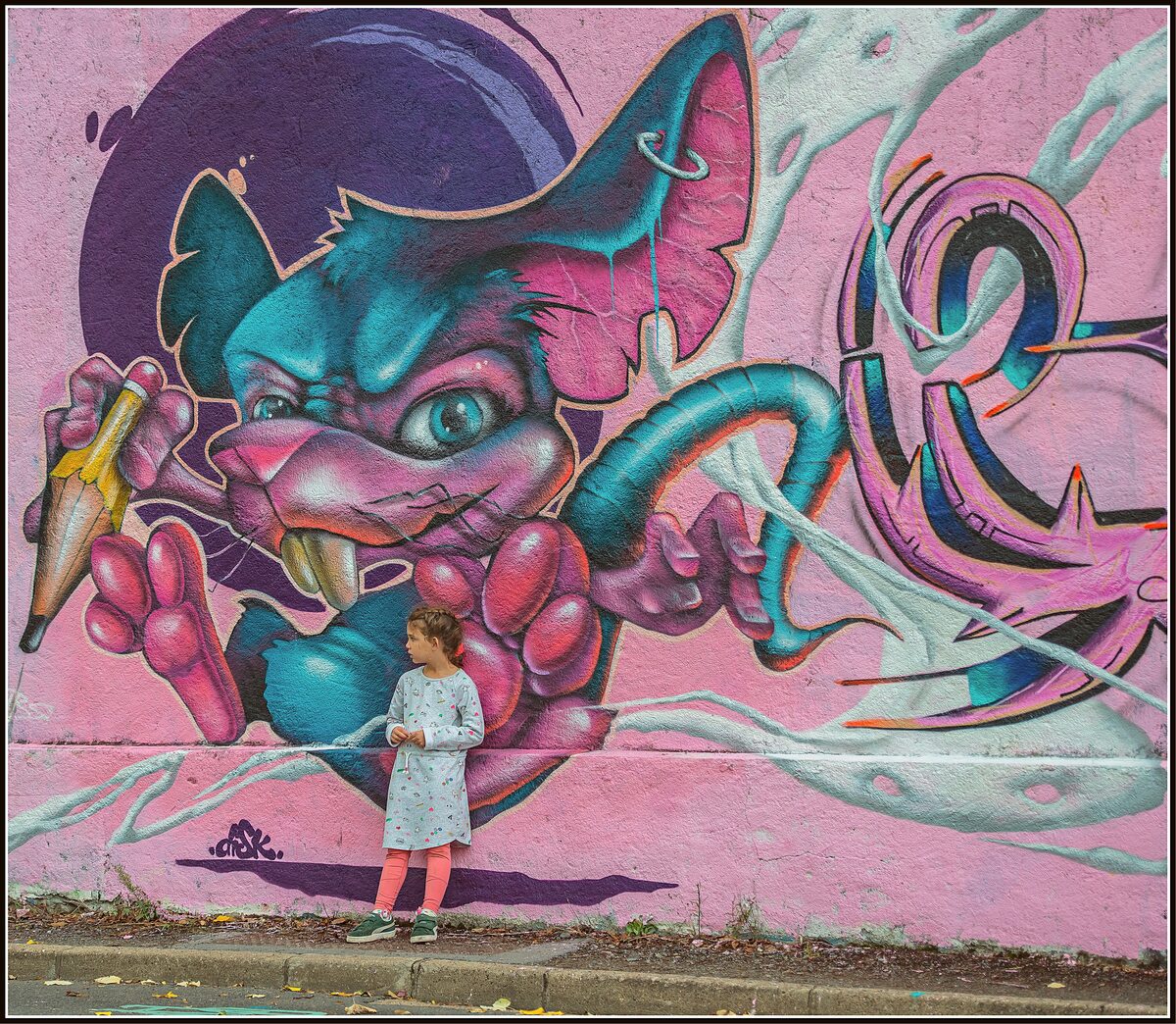 L'attitude de la petite fille n'est pas vraiment en adéquation avec la peinture murale, mais ma critique a ses limites, le photographe pratique la photo de rue et pas la photo avec modèle. Encore que ...un certain Doisneau ...