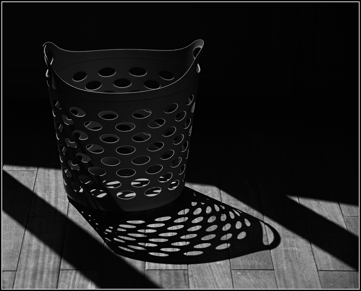 La lumière sur les perforations du panier fait l'image dans ce cas ci. Composition soignée réussie.