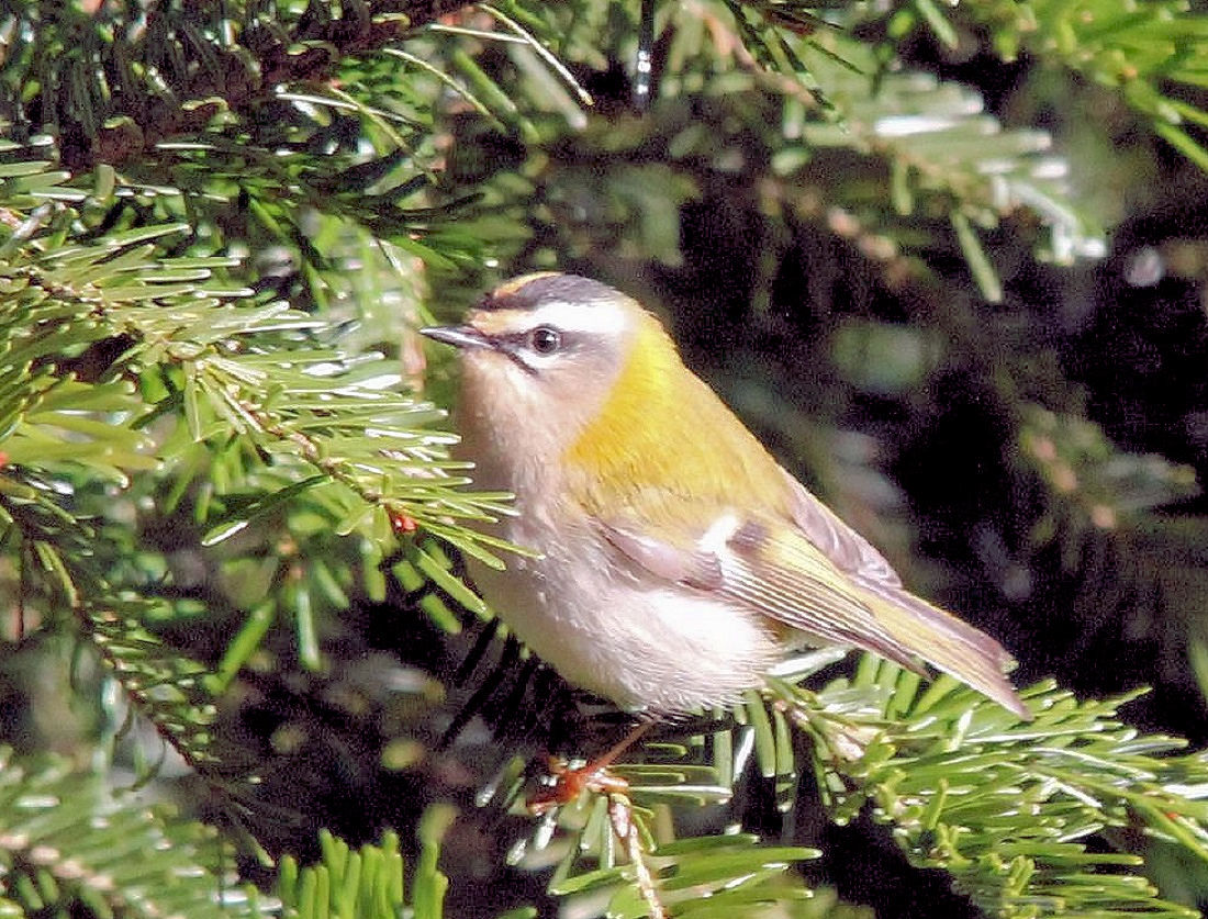 Le Roitelet à triple bandeau , c’est le plus petit oiseau d’Europe. 5gr c'est son poids. Très vif, mas non craintif pas facile de le stopper sur une photo... mais ça peut le faire...