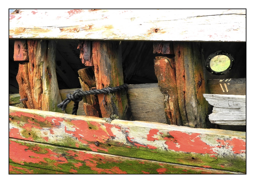 Je me suis abstenu alors que cette photo me plaisait par un certains nombres de qualités : d'abord, un regard de photographe attentif, puis une composition intéressante, conjuguant des obliques avec le point fort du hublot, en conséquent, l'oeil parcourt toute l'image. Enfin, texture du bois, harmonie des couleurs.une photo réussie.