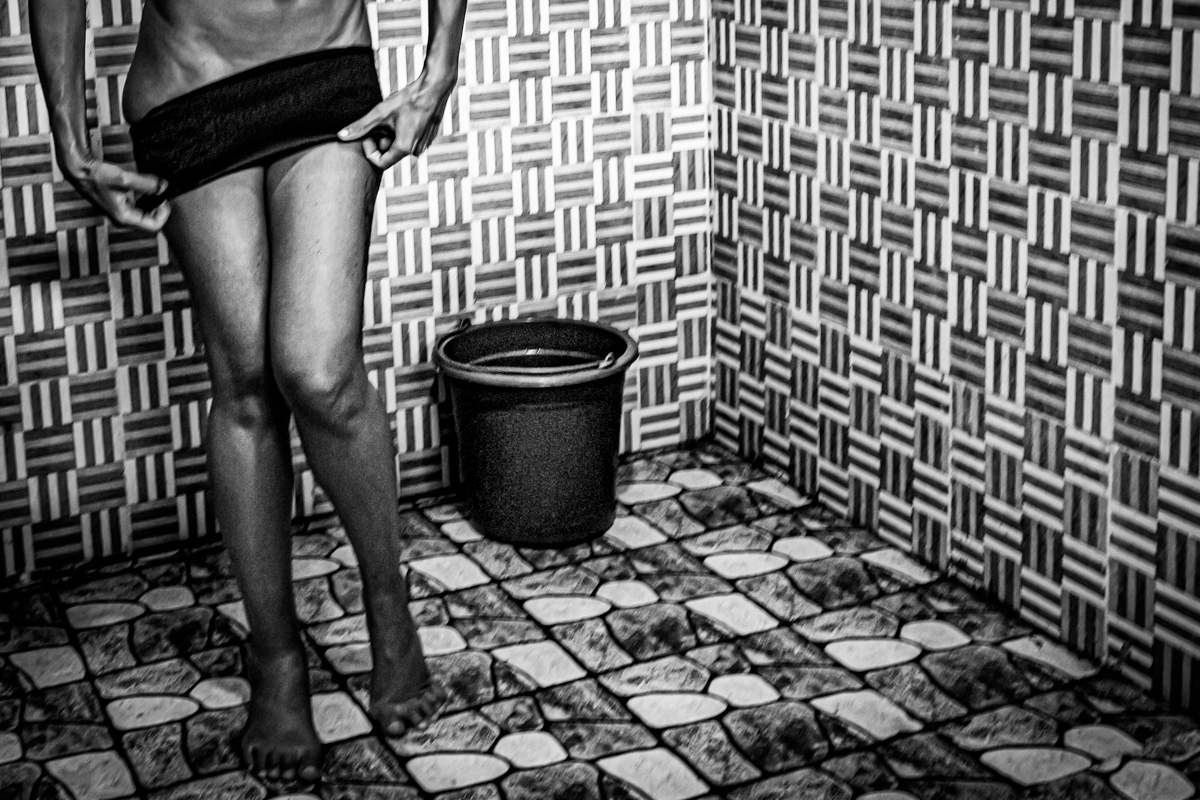 La carrelage est à lui seul un sujet! J'aime le traitement et le grain. Je me demande si je n'aurais pas aimé un petit peu plus de la personne, pour cette peau qui semble faite de bronze, comme une statue.