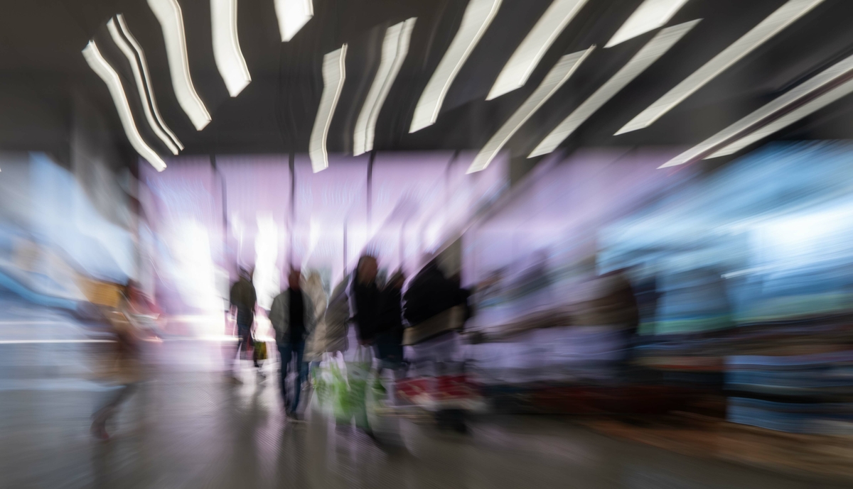 Un effet de zooming dynamique cohérent avec le titre et cet empressement des personnes de gagner la sortie