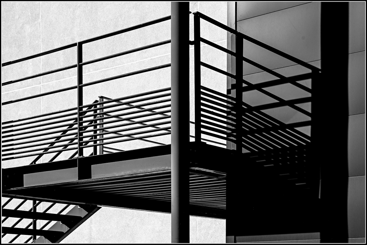 Hello Laurent, c'est graphique, j'aime ton NB, ombres et lumière, la matière du mur. Et j'aime particulièrement l'ombre sur le mur de droite. Juste celle du poteau à droite "me ferme" un peu? Y a pas un tite "tache de capteur" en haut à droite sur ce même mur?