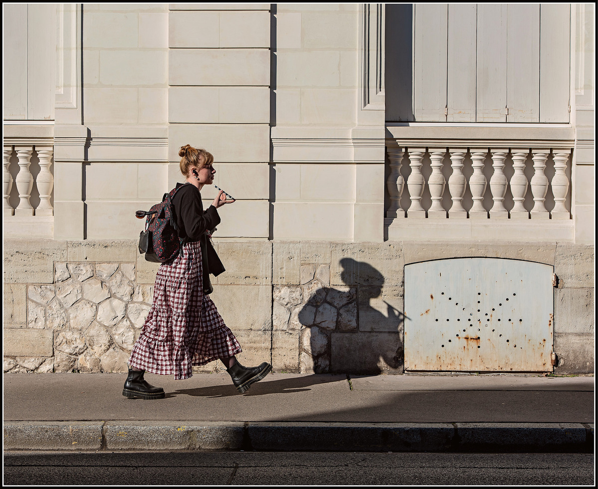 Le jeune dame et son ombre valaient clairement une photo. Peut être avec un peu moins de haut pour un format horizontal allongé qui accentuerait la dynamique énergique du pas.