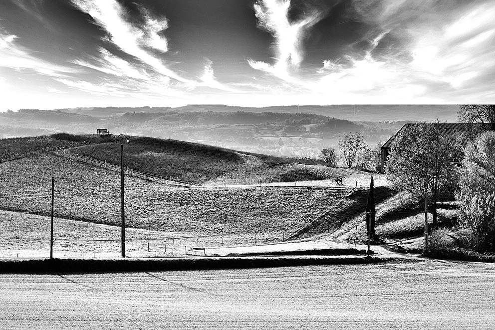 Par contre le traitement du ciel est un peu trop, contrastes , hl, et contredit la douceur de ce paysage.