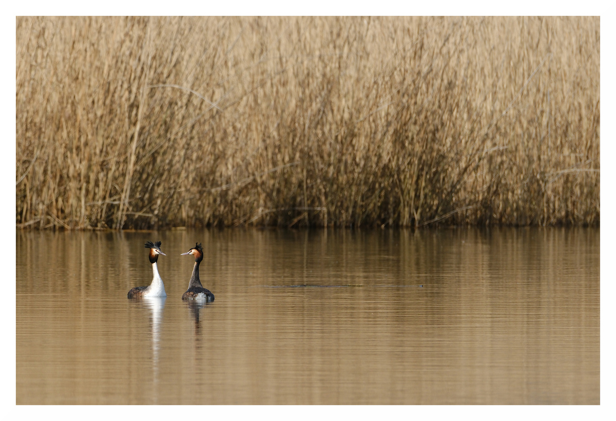 Très chouette ; une attitude en opposition de couleur des grèbes qui se reflète à merveille dans l'eau