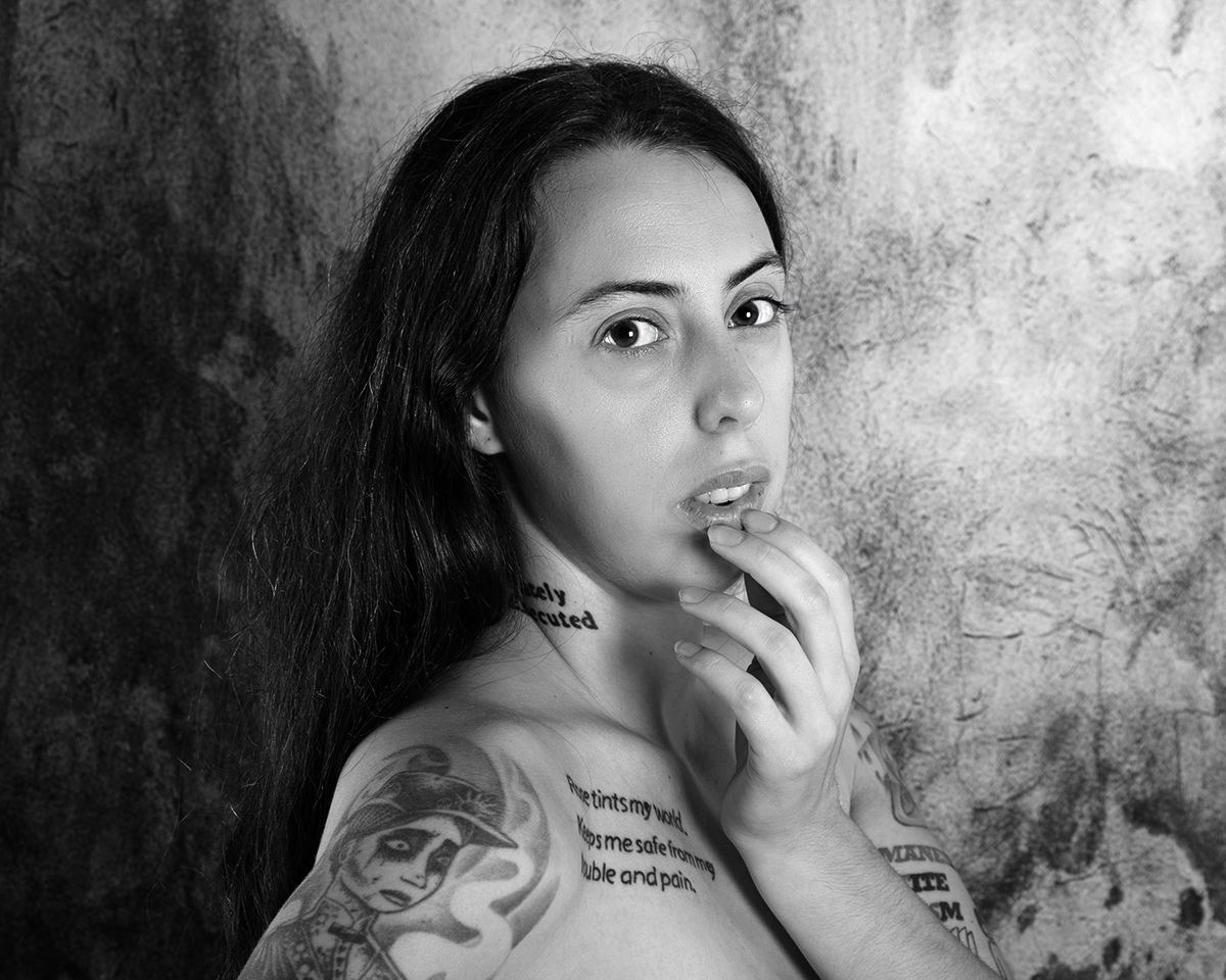 Magnifique portrait, le mimétisme entre l'attitude du modèle et le tatouage est assez bluffant.