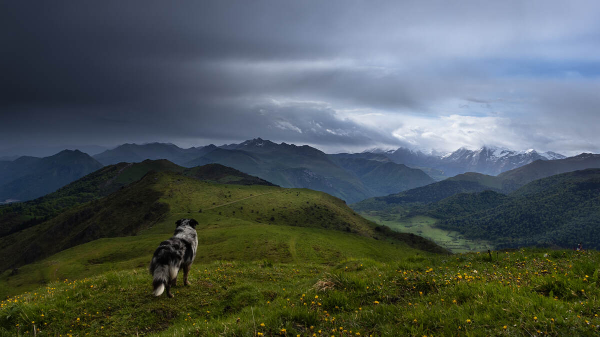 belle vue, composition efficace avec le chien qui regarde dans la bonne direction.