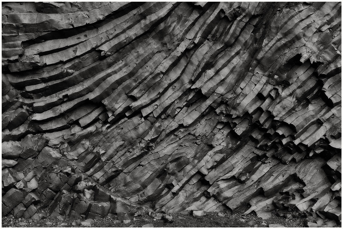 Strates de lave solidifiées, issues des nombreuses éruptions volcaniques qui ont faconné le paysage de l'Islande au fil du temps.