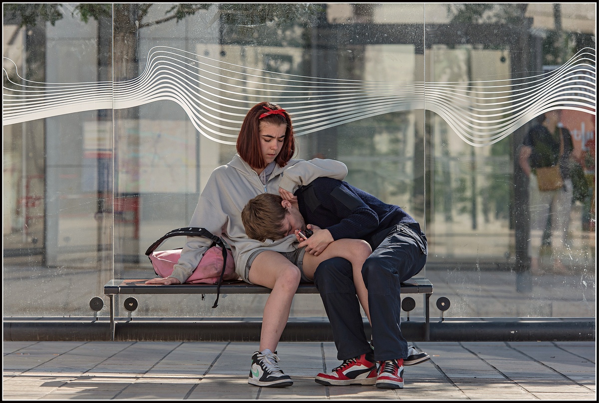 Adorables, j'adore les baskets, le sac rose qui a traîné et le bandeau rouge.