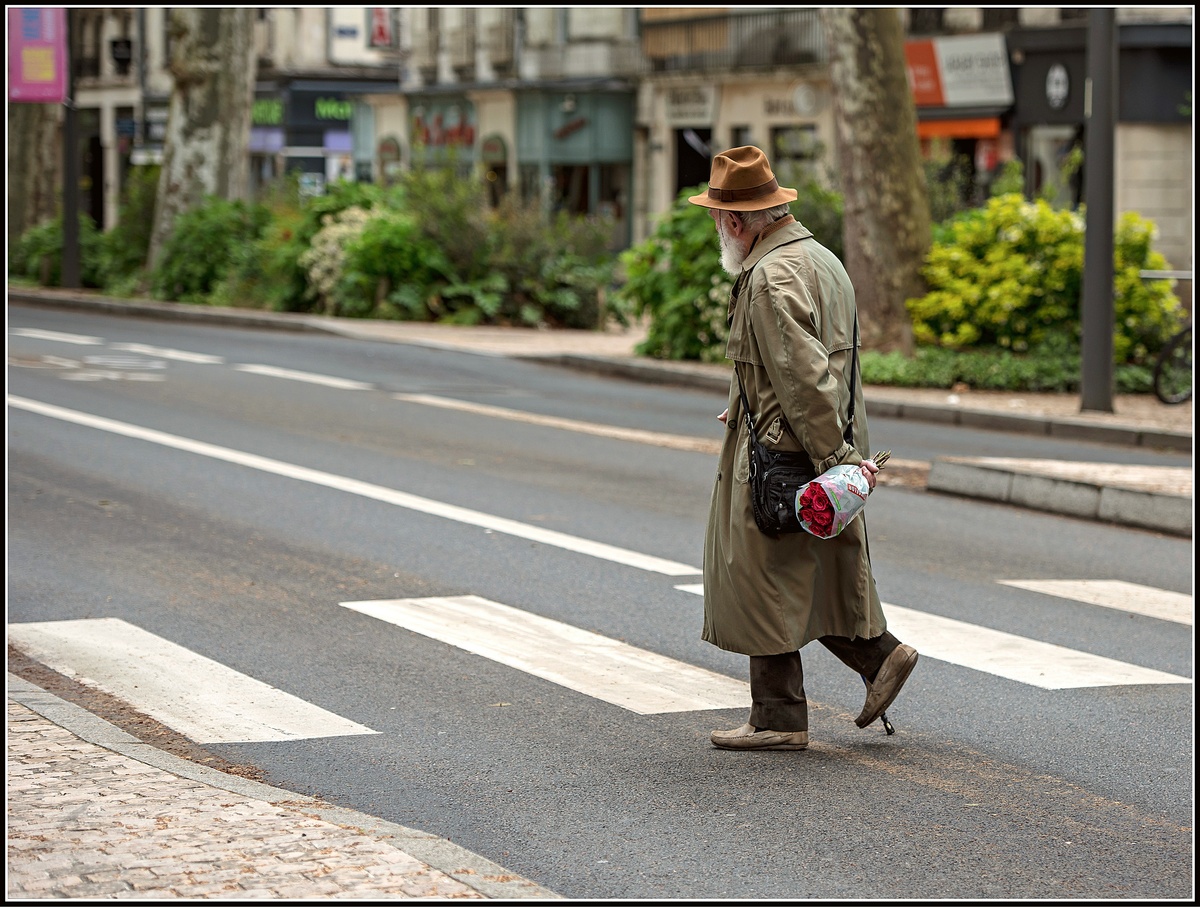 Le vieux monsieur et le bouquet de fleurs, une très jolie scène saisie.