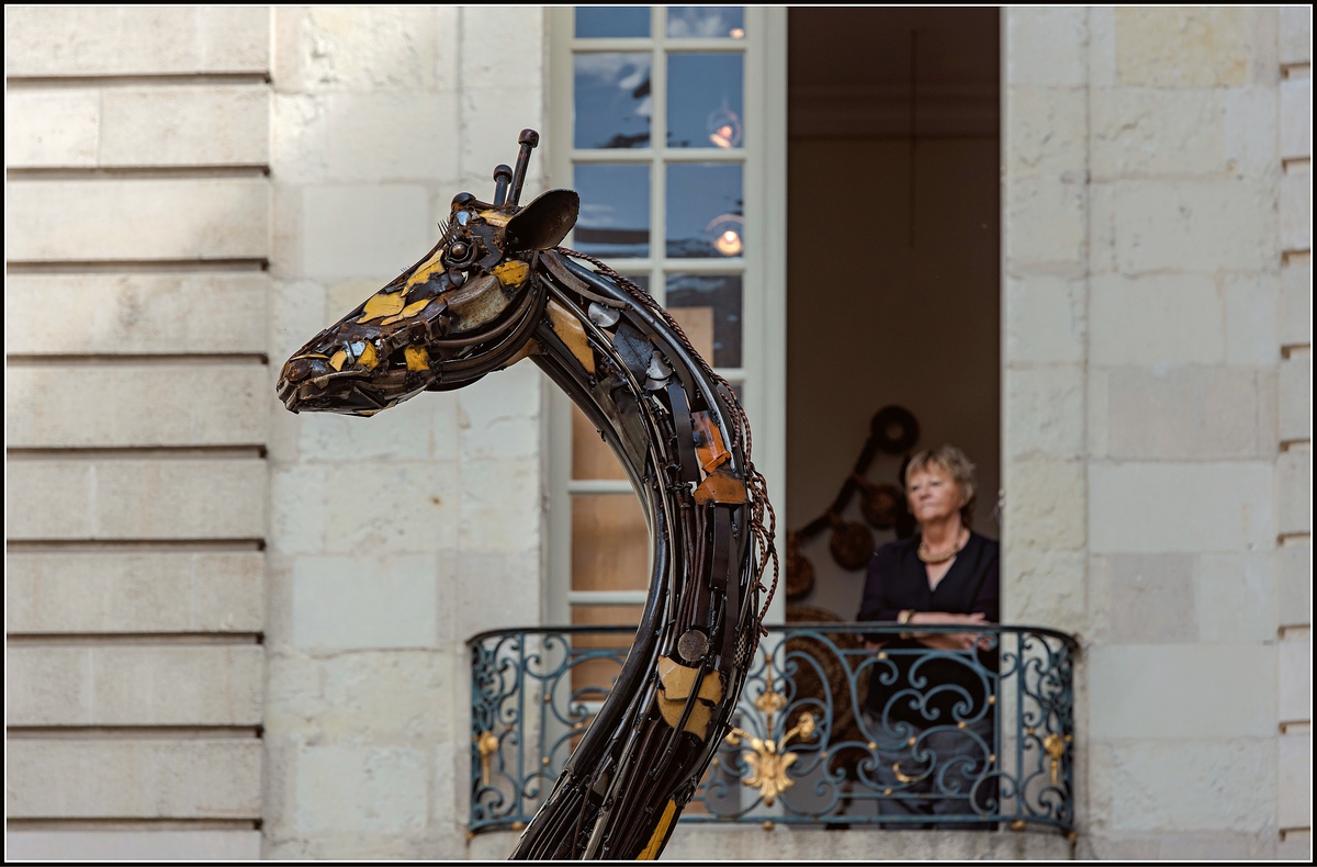 C'est une belle photo KML, originale, qui met en valeur cette belle sculpture de girafe et son interaction avec le public. Bravo!