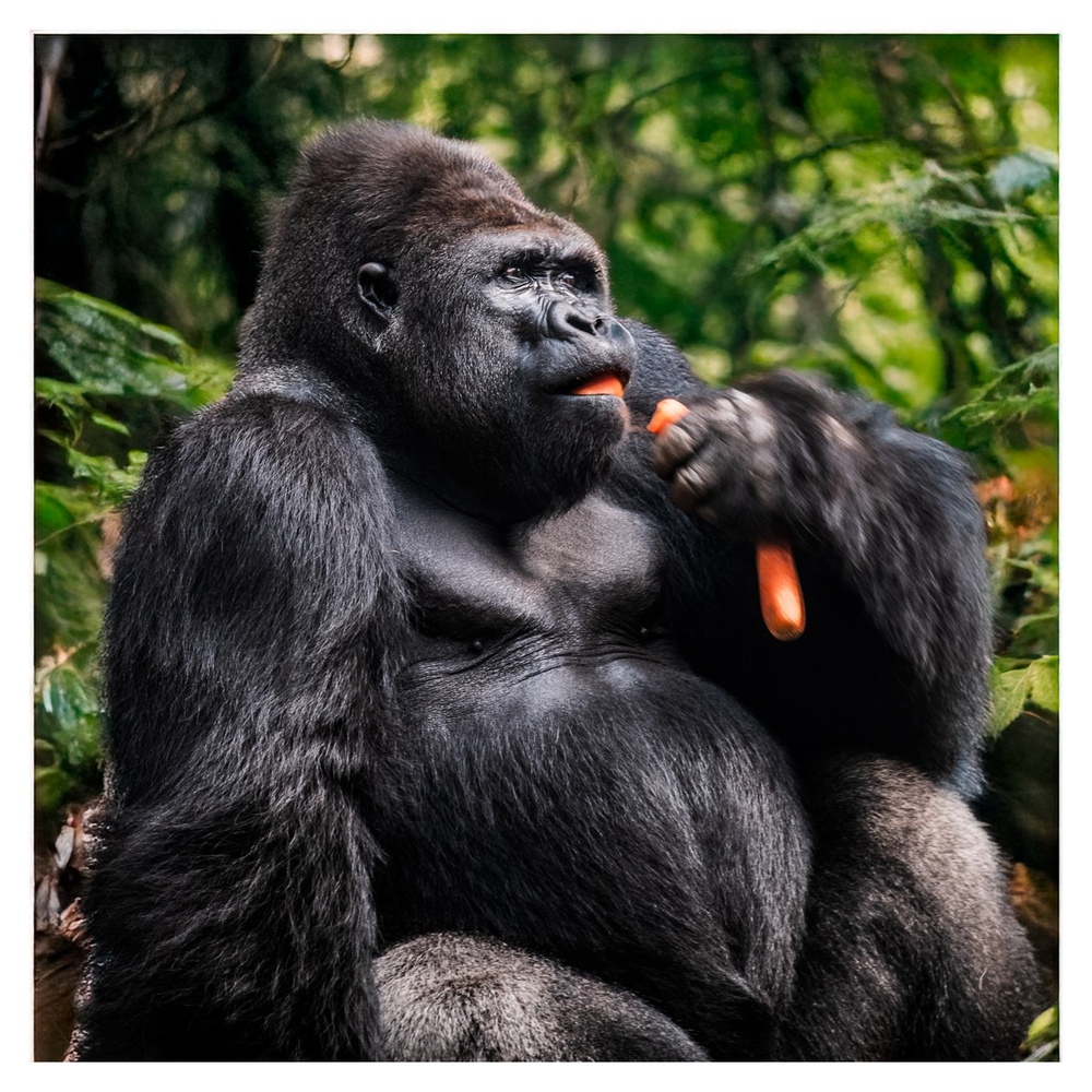 L'espace de ce carré est bien utilisé et l'expression du gorille très belle.