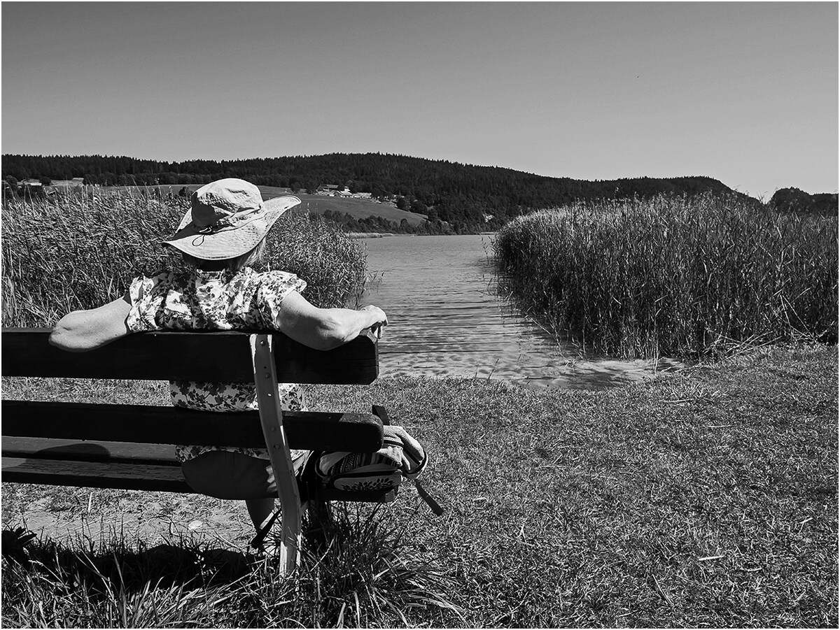 Merci Laurent, le banc était tourné vers le lac. Et l'idée est que la photo montre vers quoi elle regarde en effet.
