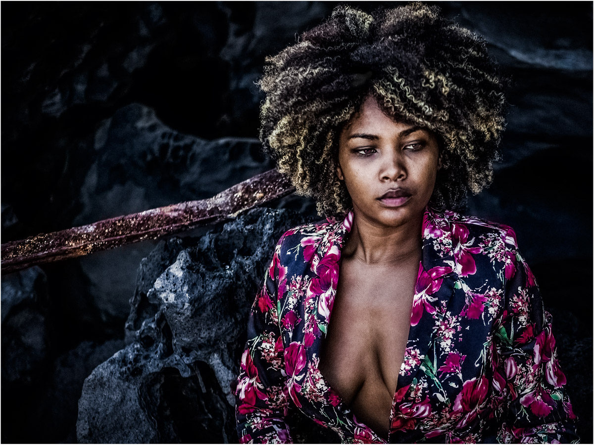 J'aime bcp l'attitude du modèle, les couleurs de ses vêtements, de sa peau , son expression très présente et à la fois lointaine et bien sur ton traitement "signature" ...