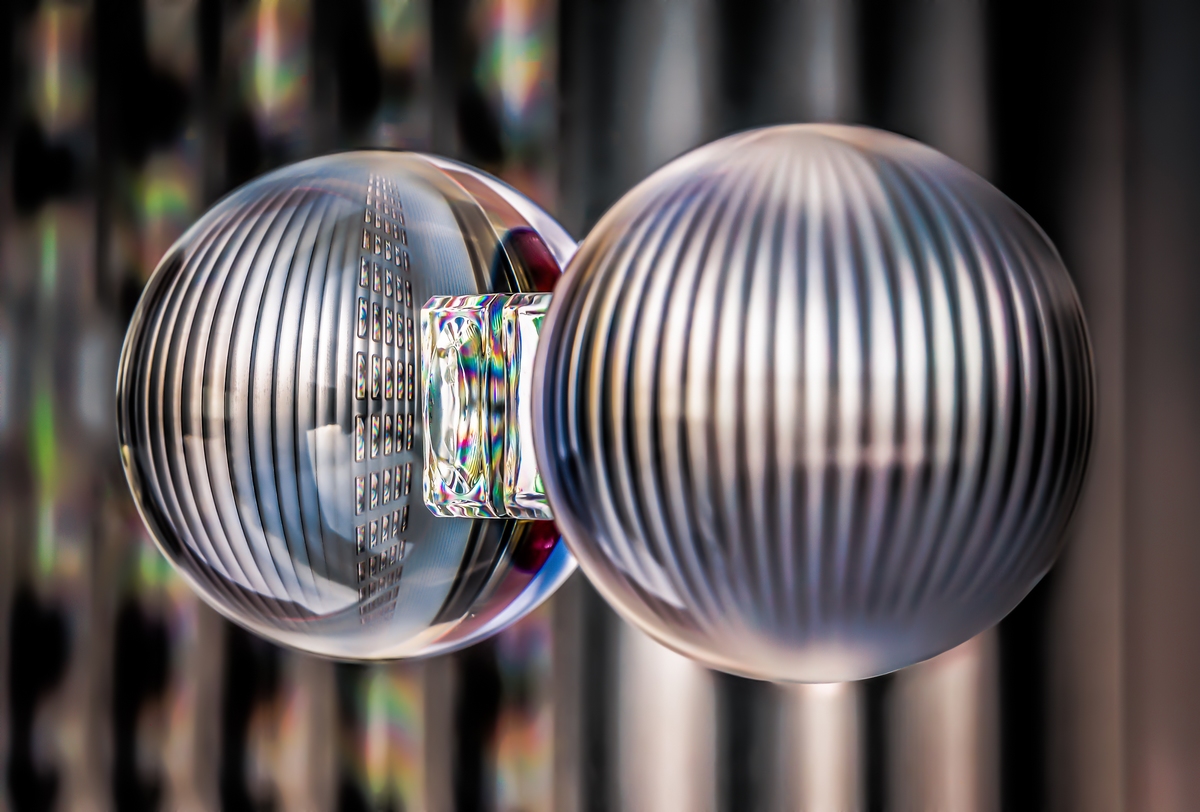 Pdv faite devant une porte d'atelier. Un tabouret sur lequel j'ai mis un miroir + une boule de cristal sur socle en cristal également.
