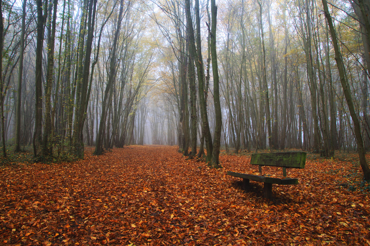 La présence du banc déserté par les promeneur.euses donne le ton dans cette ambiance automnale presque triste.