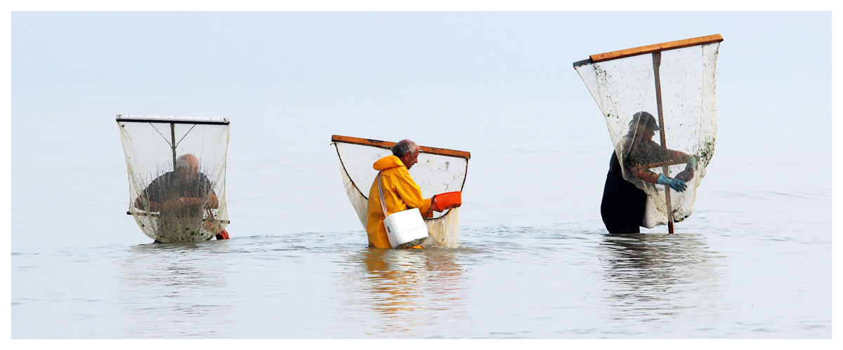 Une belle photo qui, par le traitement du ciel, concentre notre attention sur l'essentiel : le travail, le geste de ces hommes et l'eau. Bravo !