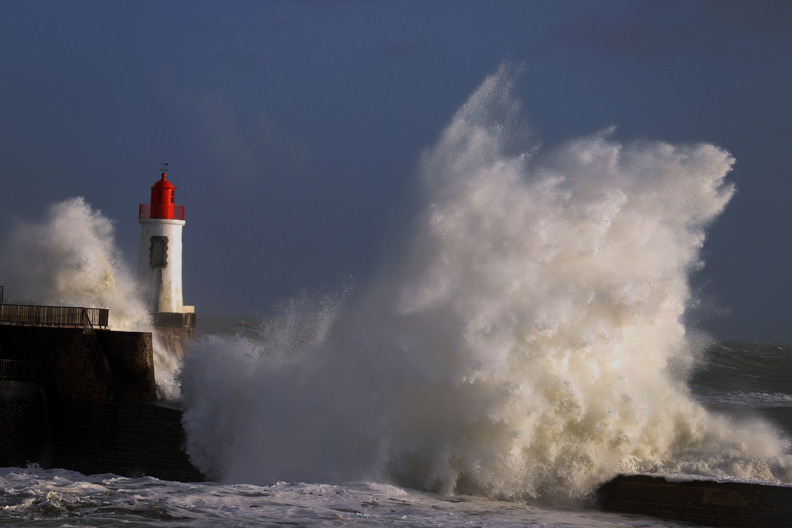 Très belle photo ,les vagues ont fait en sorte que le phare soit photographiable; il faut les remercier