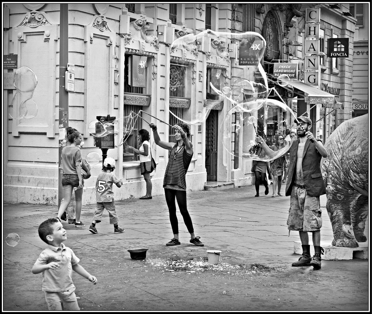 Une très belle scène avec ce petit garçon dont le sourire enthousiaste s'envole comme les bulles.