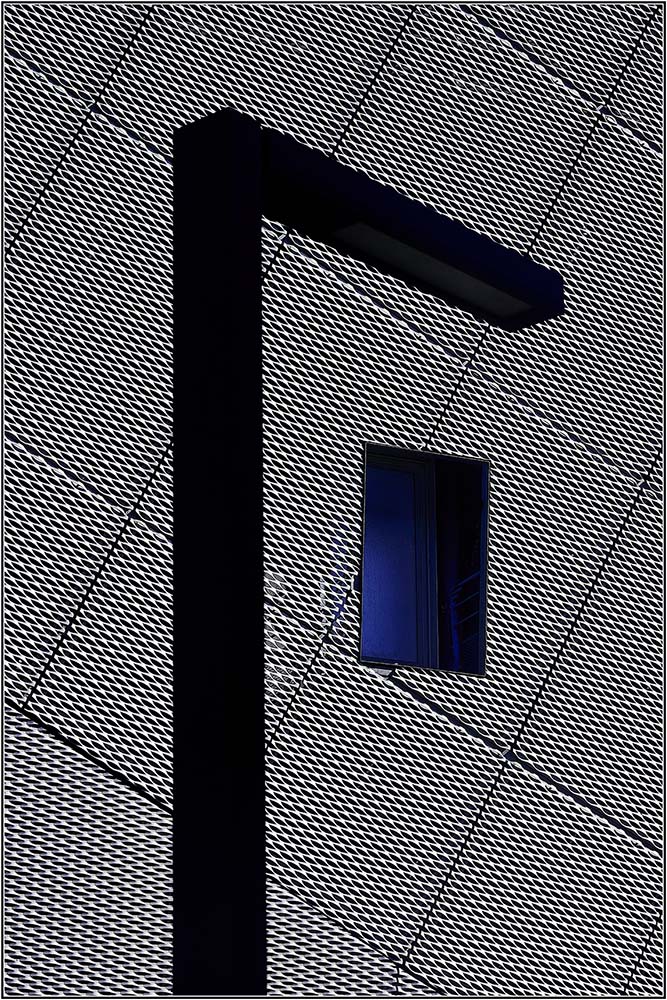 J'ai envie de chipoter pour faire coïncider l'angle de ce luminaire urbain avec l'angle du grillage, ce qui ne m'empêche pas d'être fan