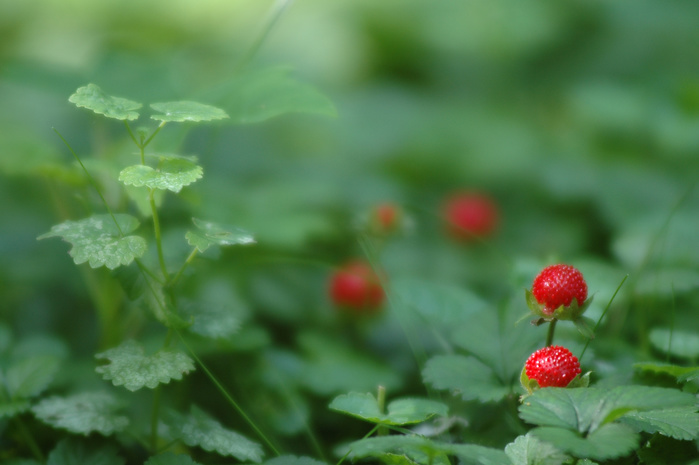 J'aime bien le flou qui entoure cette image et lui donne un côté très doux. J'aurais peut-être cadré différemment, pour mieux mettre en valeur ces taches rouges, qui semblent quand même un peu perdues au milieu de tout ce vert.
