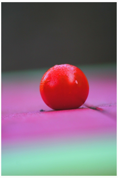 bingo ryad une tomate cerise, par contre le truc à droite ce n'est que le relief de la table!!