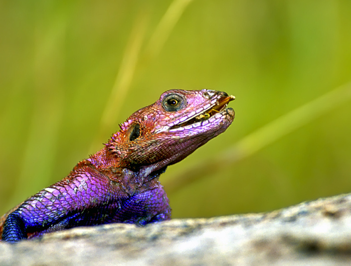 Agame avalant un sauterelle