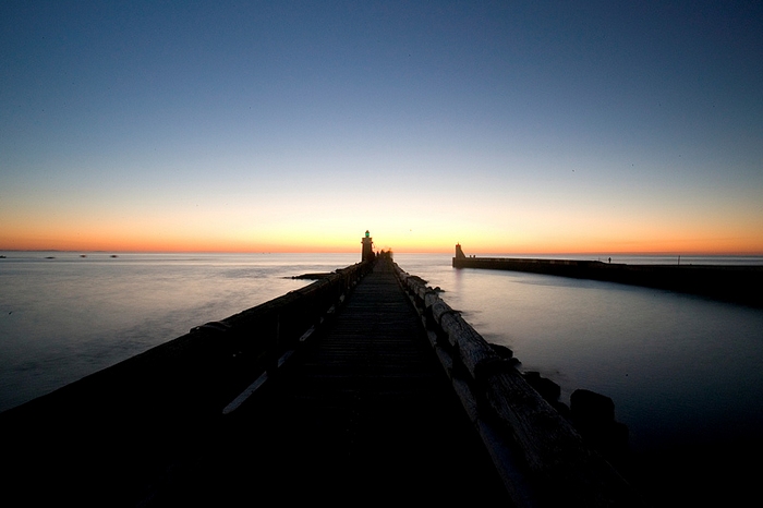 Bonjour et bienvenue Todoweb, j'aime beaucoup les couleurs du bleu en passant par l'orange, le bas de la photo aurait mérité d'être un poil éclairci car il semble que cette jetée soit en bois.