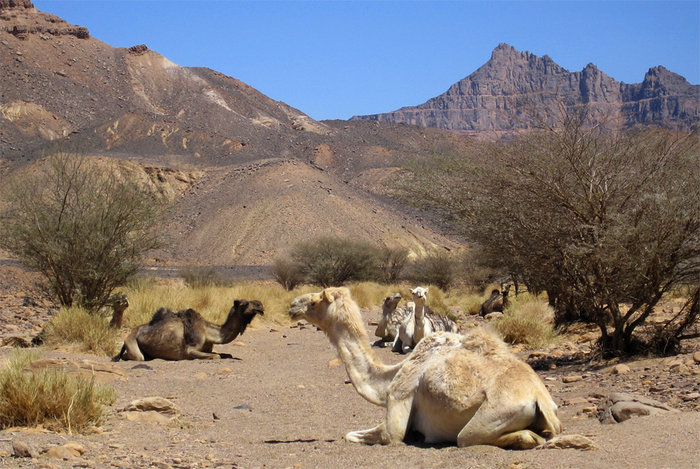 Beau paysage, j'aurais essayé de choisir un angle de vue sur lequel le chameau du premier plan ne vienne pas superposer ceux de derrière.