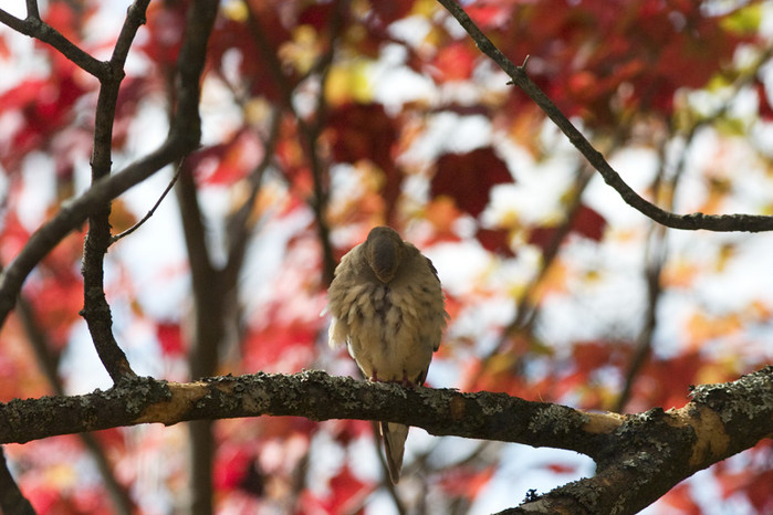 On dirait que ton oiseau vient de terminer de jouer sa pièce sur une scène dont le décor est magnifique parce que naturel.