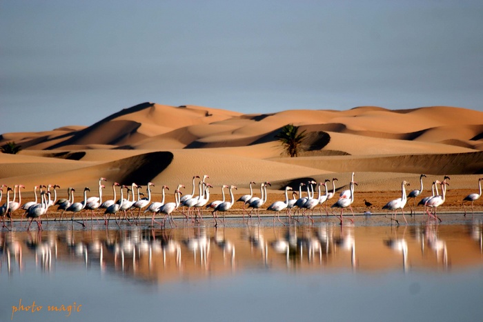 Sinon, beau rendu du désert, malgré un petit manque de piqué et superbe reflet dans l'eau.