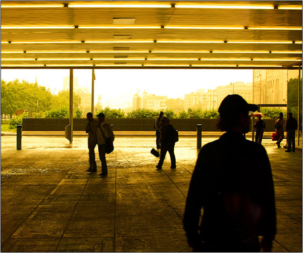 j'aime ces tons jaunes et ces personnages en mouvement qu'on devine..