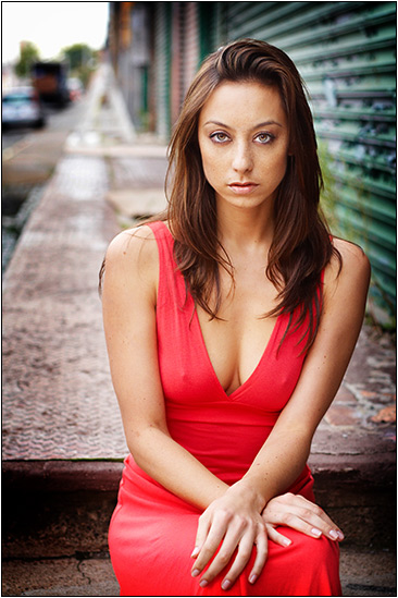 J'adore le fond et la perspective que l'on devine sur l'épaule du modèle trés joli.Bonne expression et les couleurs, top.Bravo pour le jeu des complémentaires de couleurs entre les verts flous et le rouge vif et net...Sujet trés légèrement décallé vers la droite pour laisser deviner la fuite du regard derrire....Beau, trés.